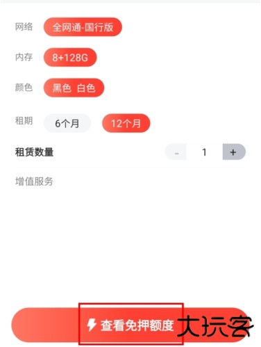 2、选择好商品属性之后,点击下方查看免押额度按钮;