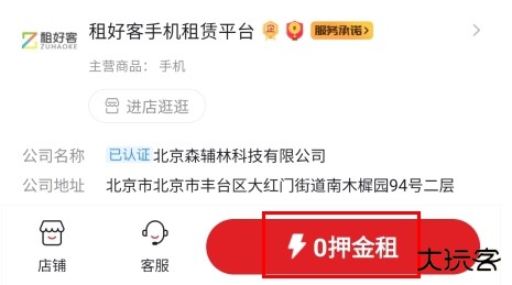 1、用户在选择好商品,在该商品页面中,点击0押金租按钮;