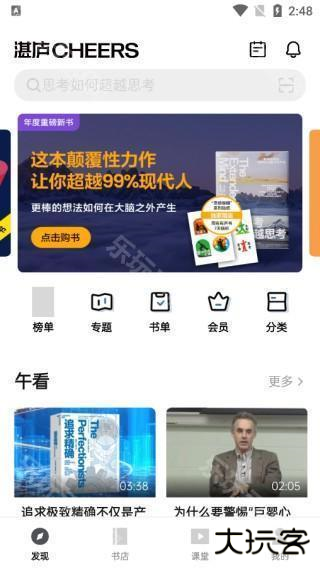 发现板块中涵盖了榜单、专题、书单等等内容,更有每日时段的视频推荐