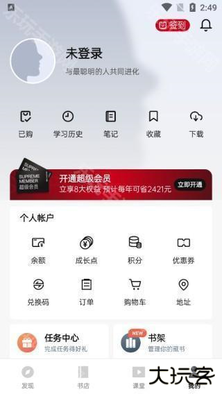 我的板块中可以查看自己的学习历史,笔记,还可以定制自己的书架,以及一些优惠券等等