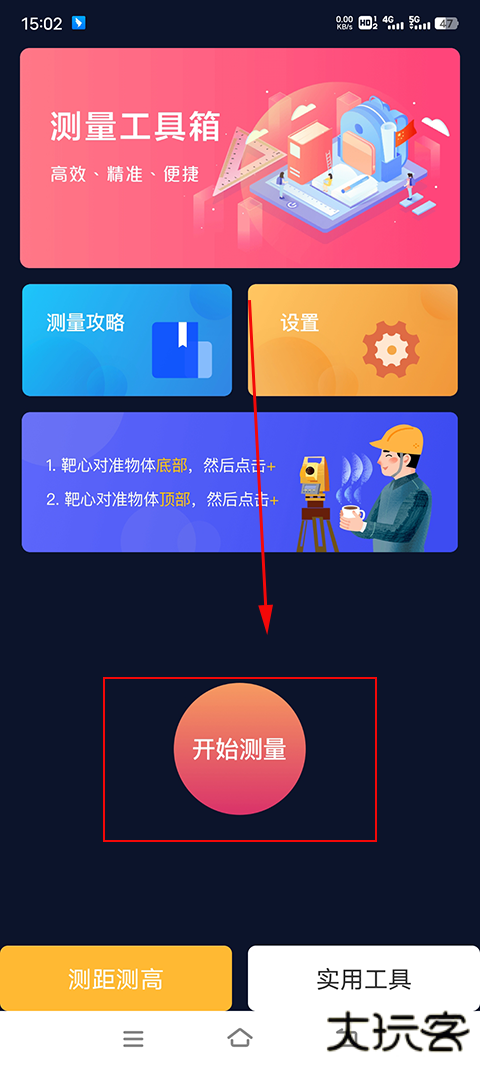 1、乐玩网下载安装打开软件进入app的主页,我们点击“开始测量”