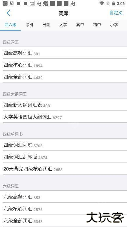 2、然后需要进行词库的设置,这里以四级高频词汇为主;