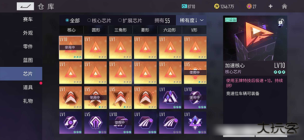 1、最简单的莫过于为爱车增加芯片,玩家只需要按照需要为车辆安装起到提升性能的芯片,就可以让车辆增加性能,例如提高平跑速度,提升漂移充能或者耐久度增加等。