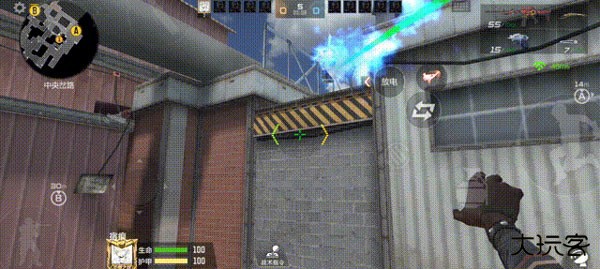 该投掷点位可以阻挡潜伏者抱团强出B门,让架拱门的狙击手以及埋伏在木箱旁的潜伏者回退,为前来回防的队友或中路/A通绕后的队友拖延时间,以下为潜伏者视角展示: