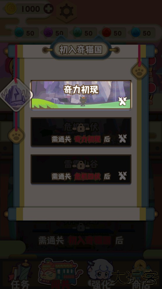 1、首先,玩家在本站下载并安装好游戏之后,打开进入,游戏不需要登录,直接点击【出入奇猫国】;