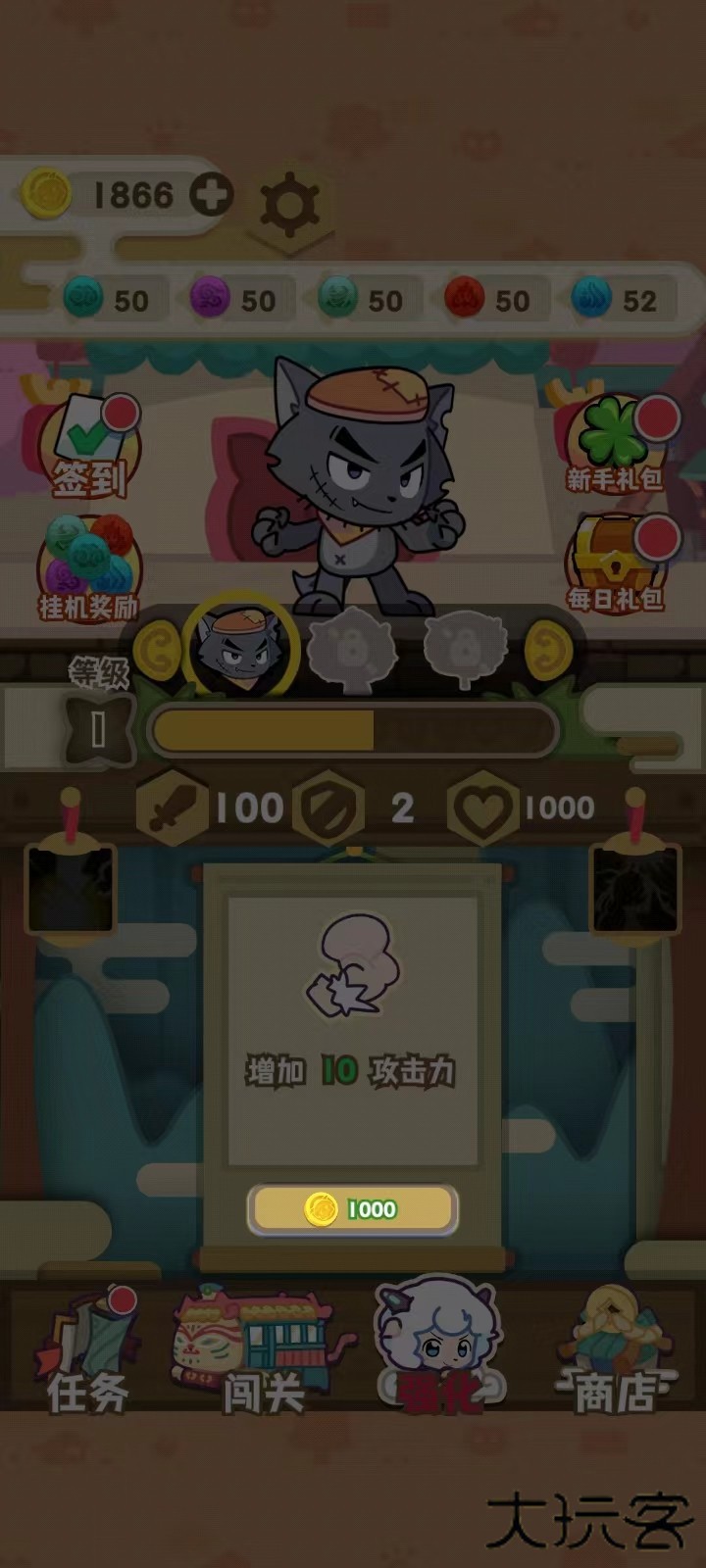 8、获得的金币可以用来强化角色攻击力,点击下方的【强化】,然后花费1000个金币即可;