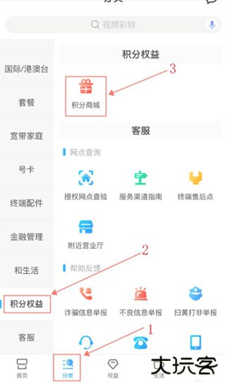 4、点击选择下面的分类,然后点击选择左侧的积分权益,点击选择积分商城;
