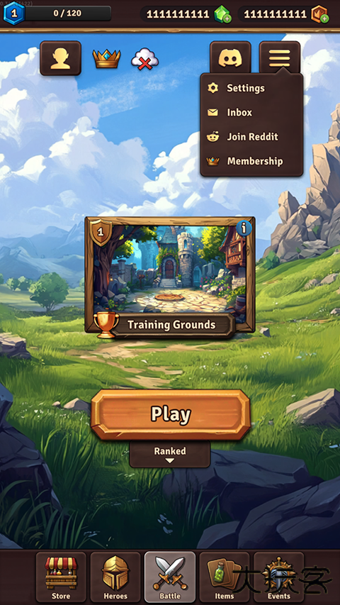 1、进入背包乱斗手机版游戏后我们需要将语言调整至中文,点击右上角的菜单选择第一个设置。