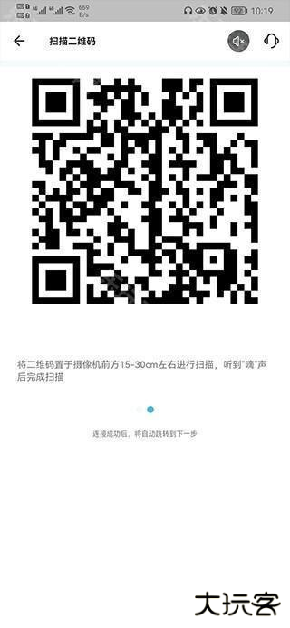 4、将手机连接上WiFi后,会出现一张二维码,将二维码放在摄像头前扫描后即可绑定