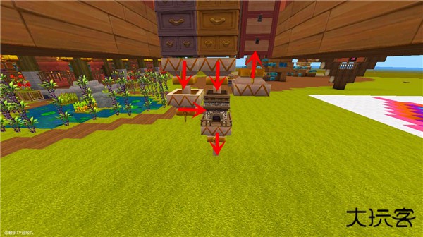 3、放置漏斗+熔炉(如图)注意放置位置: