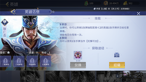 狄仁杰的技能和墨子有点相似,每回合固定丢弃一张无用牌换取对方一张牌的能力相当于无责任的探囊取物,敌人的防御能力将会大大降低。如果只是这样便罢了,它还可以将任意手牌当做无懈可击使用,等于是只要有手牌所有的技能都对他无效。只凭普通杀闪的话要怎么才能击败他呢?