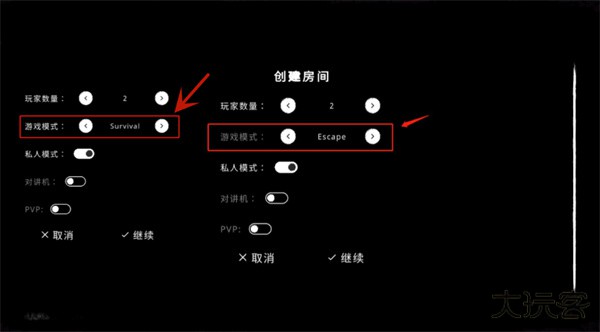 游戏模式有两种,【Escape】是逃生模式,【Survival】是生存模式。