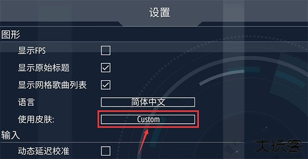 2、在使用皮肤选项的后方有一个custom按钮,我们点它