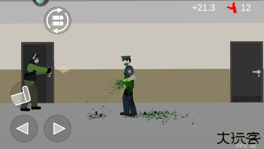3、进入游戏后,左侧按钮进行移动,点击屏幕进行射击。